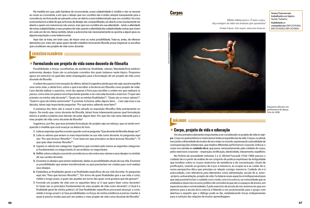 • Fornece ferramentas para que o professor reflita sobre seu projeto de vida enquanto docente de Filosofia.