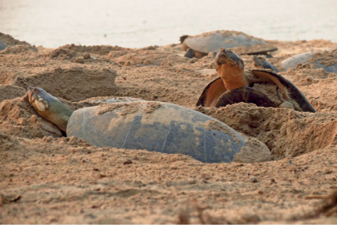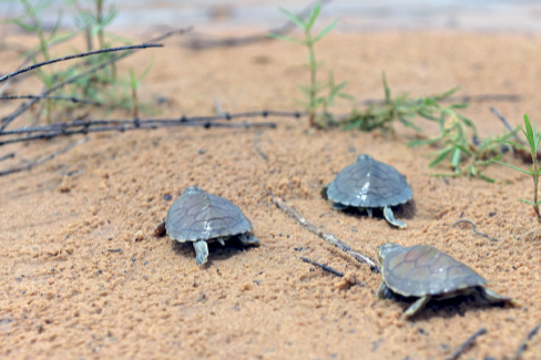 LEGENDA: Quando nascem, os filhotes saem do ninho e seguem para a água. Rio Tapajós, Pará, em 2018. FIM DA LEGENDA.