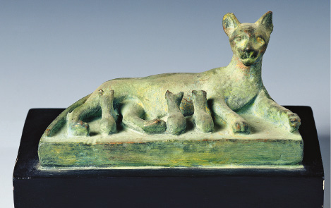 LEGENDA: ESCULTURA DE GATA E SEUS FILHOTES, EGITO ANTIGO, SEM DATA. BRONZE, ALTURA: 45 CM. MUSEU DE ETNOGRAFIA, HISTÓRIA NATURAL E ARQUEOLOGIA EMMANUEL LIAIS, CHERBOURG, FRANÇA. FIM DA LEGENDA.