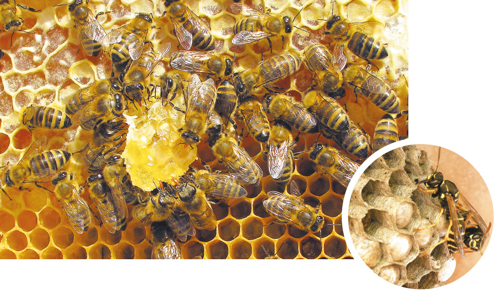 ELES ESCOLHEM DIFERENTES MATERIAIS PARA FAZER SUAS MORADAS: AS ABELHAS USAM A CERA; AS VESPAS, A CELULOSE; E AS AVES APROVEITAM FOLHAS E GALHOS FINOS.