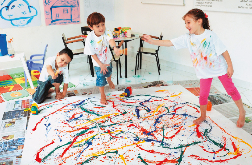 Converse com os estudantes sobre suas experiências com pinturas e sobre o brincar com formas. Pergunte, por exemplo: