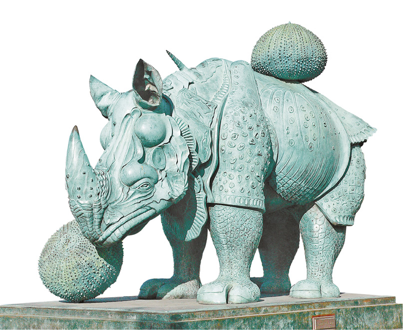 - Por que será que o artista decidiu colocar ouriços-do-mar junto do rinoceronte?
