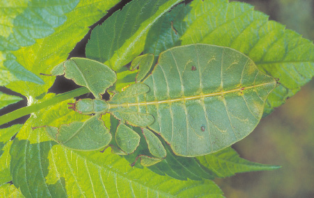 LEGENDA: O BICHO-FOLHA PARECE MESMO UMA FOLHA. É ASSIM QUE ELE SE ESCONDE DE OUTROS ANIMAIS. FIM DA LEGENDA.