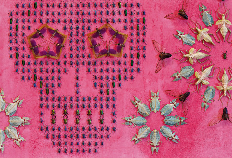 Peça aos estudantes que se imaginem chegando a uma sala cheia de desenhos coloridos nas paredes e que, ao se aproximar deles, descobrem que são feitos com insetos. Mostre aos estudantes que ocorre na observação da obra de Jennifer Angus (1961) algo que também acontece com a obra que estudaram de Arcimboldo: percebemos esses trabalhos de modo diferente quando estamos longe ou quando estamos perto. Pergunte se conhecem algo que, visto de longe, parece diferente do que é quando se chega bem perto.