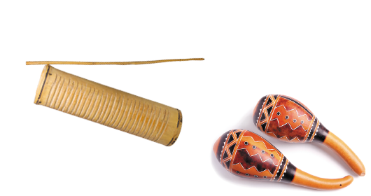 Reco-reco e chocalho são exemplos de idiofones. |