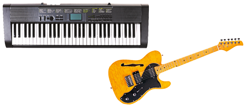 Teclado e guitarra elétricos são exemplos de eletrofones. |