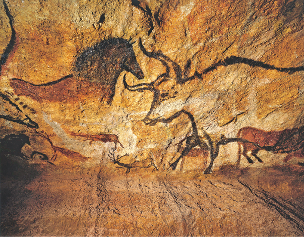LEGENDA: Pinturas rupestres no teto da caverna de Lascaux, na França, criadas com tintas feitas com carvão e pó de rochas coloridas. Foto de 2012. FIM DA LEGENDA.