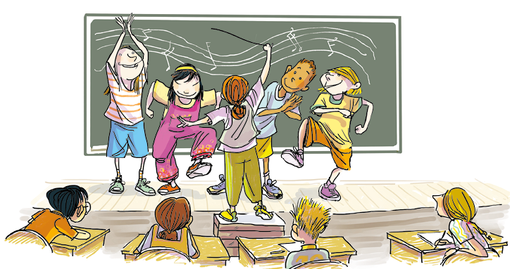 Quando terminar, experimente tocar sozinho. Depois, toque com seus colegas. Você também pode experimentar trocar de instrumento com eles.