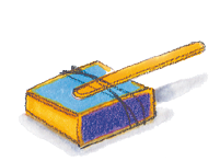 LEGENDA: Gri-gri feito com caixa de fósforos e palito de sorvete. FIM DA LEGENDA.